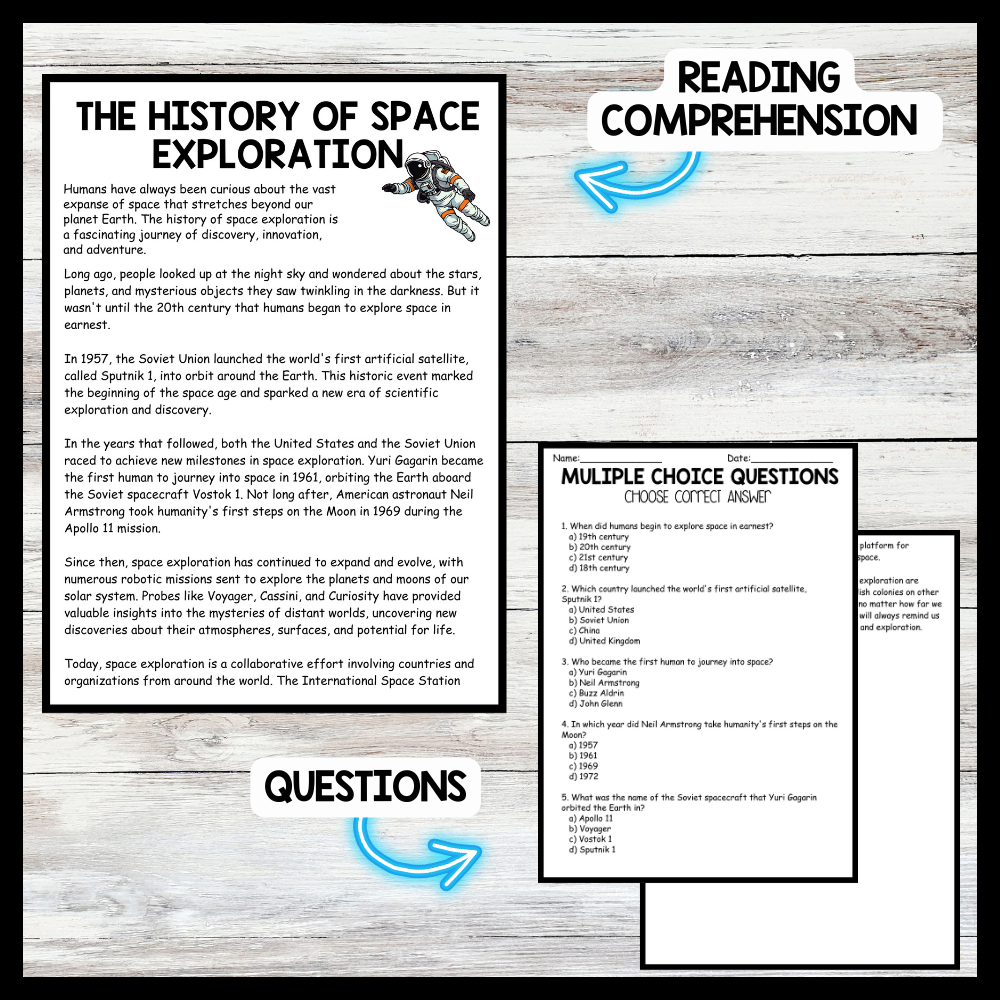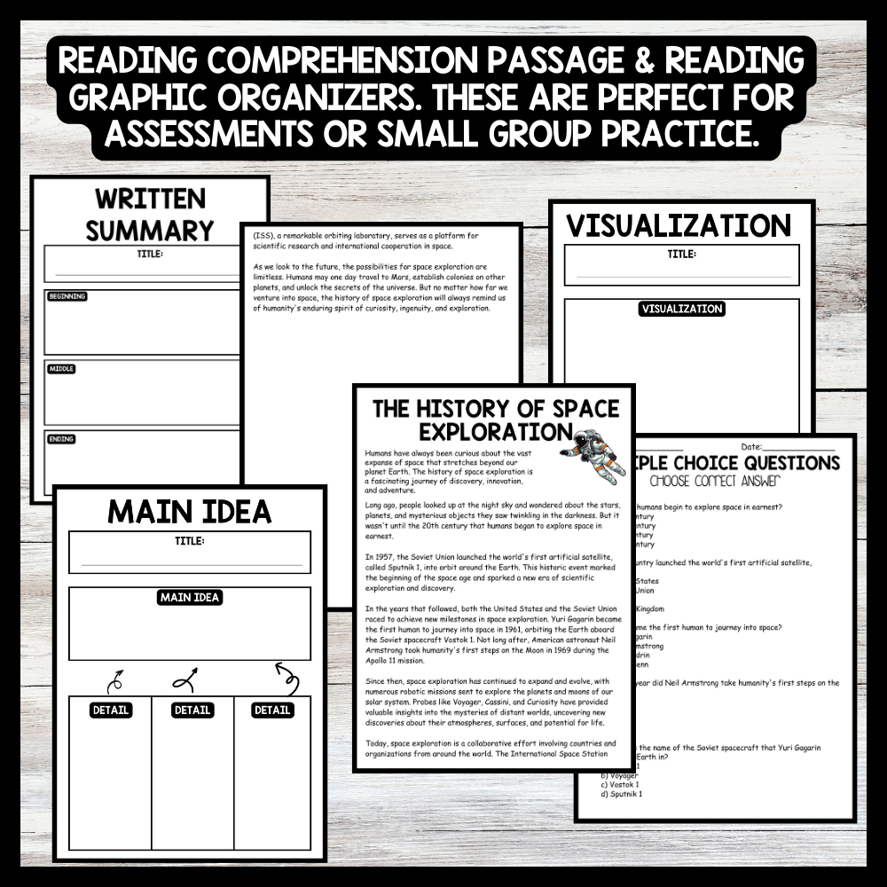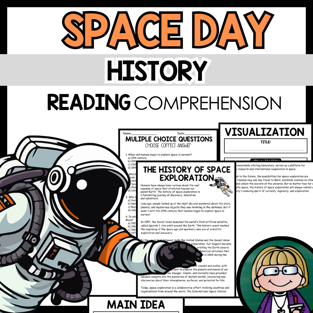 Grow your students knowledge with this Nonfiction Reading Comprehension Passage - Space Day - History These reading practice passages are perfect for: warm-up, bell work, homework, or weekly assessments. Students can use independently in literacy groups, guided reading groups. Different...View more