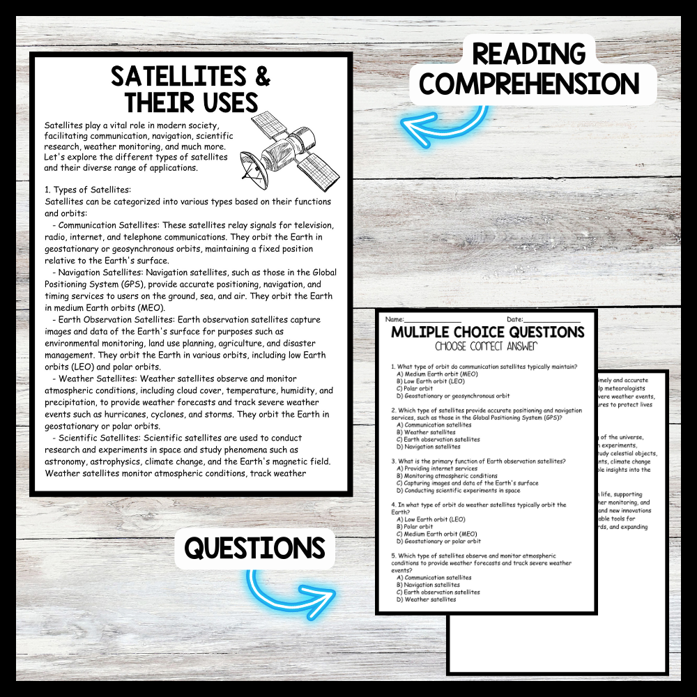 Grow your students knowledge with this Nonfiction Reading Comprehension Passage - Space Day - Satelites & Uses