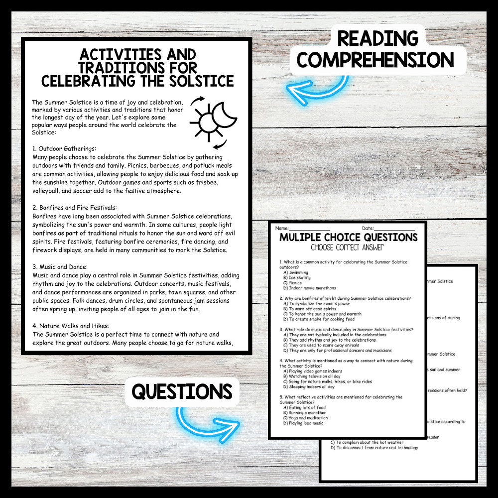 Grow your students knowledge with this Nonfiction Reading Comprehension Passage - Summer Solstice - Activities & Traditions
