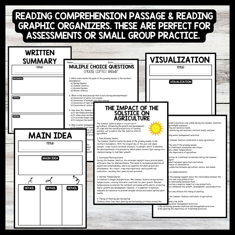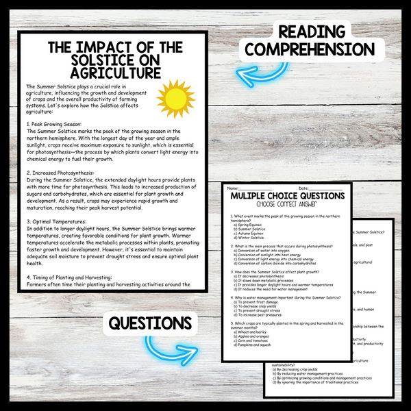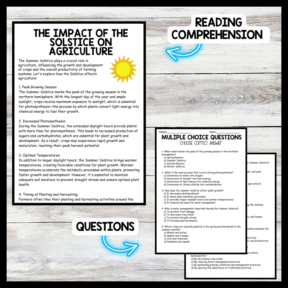 Grow your students knowledge with this Nonfiction Reading Comprehension Passage - Summer Solstice - The Impact on Agriculture These reading practice passages are perfect for: warm-up, bell work, homework, or weekly assessments. Students can use independently in literacy groups, guided...View more