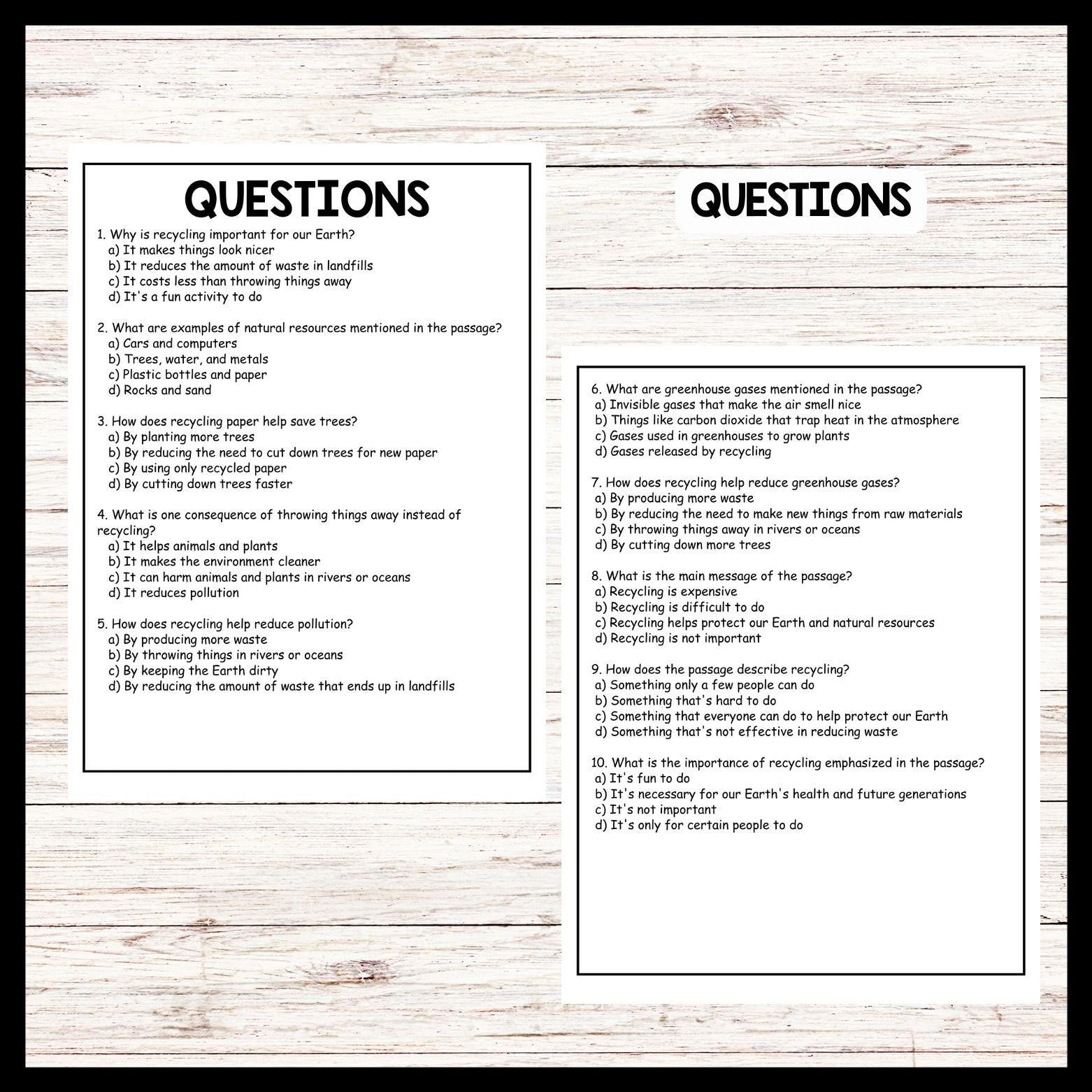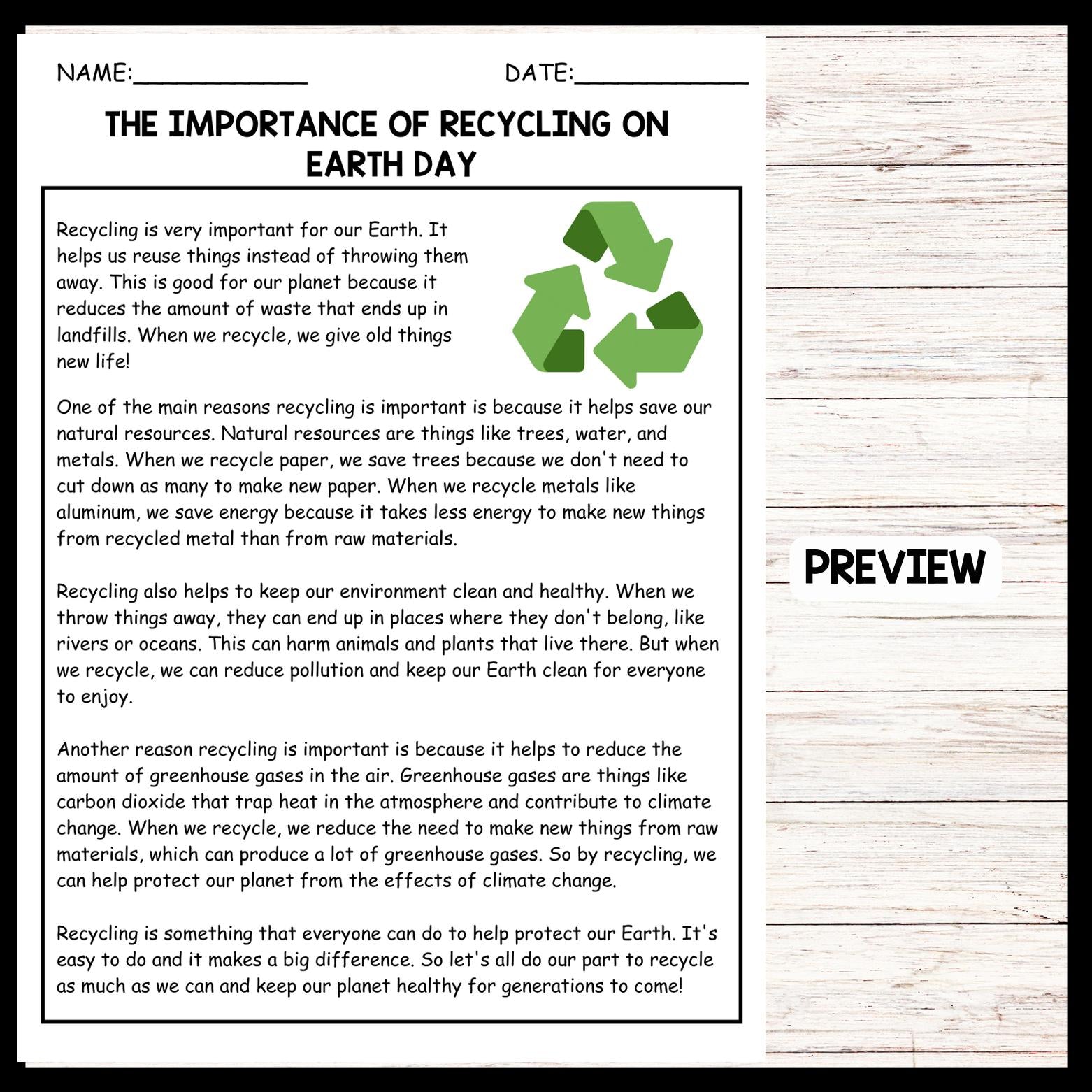 This passage explains the importance of recycling in conserving natural resources, reducing pollution, and mitigating climate change. It's helpful for teachers because it presents clear and straightforward reasons why recycling is essential, making it easy for students to understand the impact of their actions on the environment.