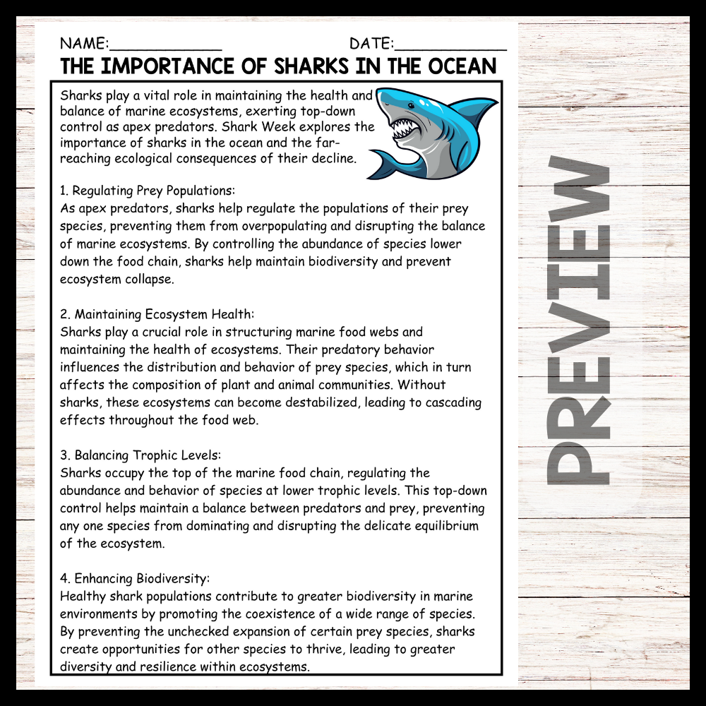 Students benefit from learning about sharks in several ways. This topic enhances their understanding of ecological balance and the importance of predator-prey relationships. It also fosters critical thinking about conservation and the impact of human activities on marine life. Engaging with this material can inspire interest in marine biology and environmental stewardship.