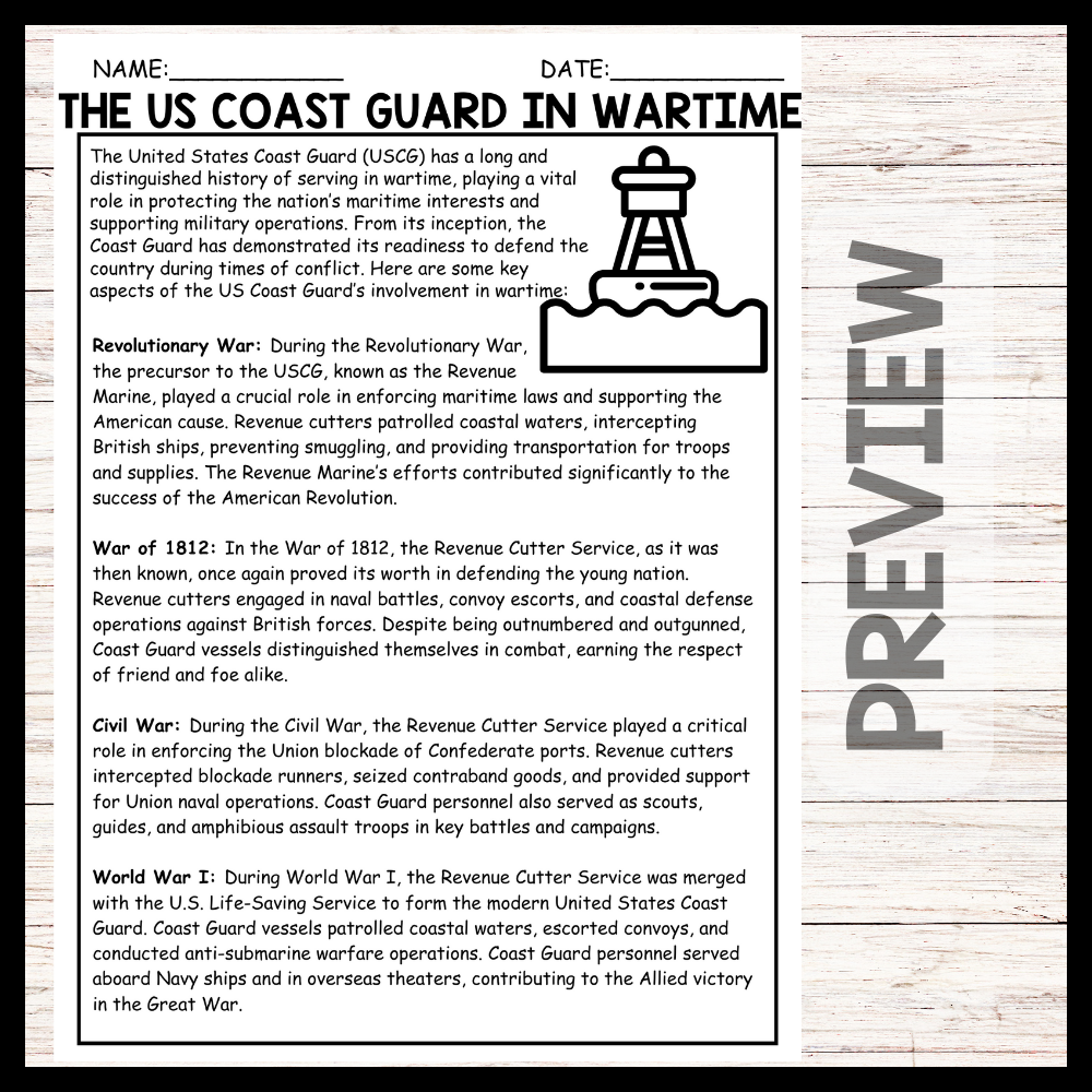 The passage detailing the United States Coast Guard's (USCG) involvement in various wars is an invaluable resource for teachers, illustrating the historical significance and evolution of the USCG in defending the nation. By learning about the Revenue Marine's role in the Revolutionary War, students can understand the foundational efforts of maritime law enforcement and its impact on the American cause. This context highlights the importance of maritime strategy in achieving independence and sets the stage for the USCG's continuing contributions.