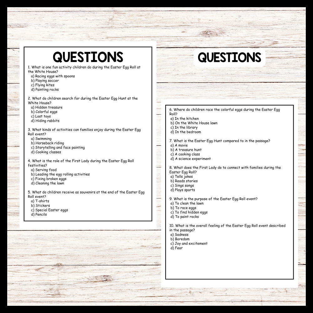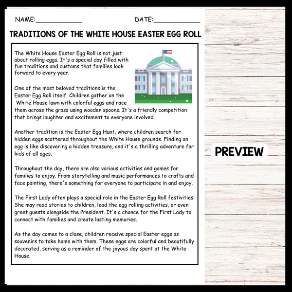 "TRADITIONS OF THE WHITE HOUSE EASTER EGG ROLL" EASTER EGG ROLL Reading Comprehension