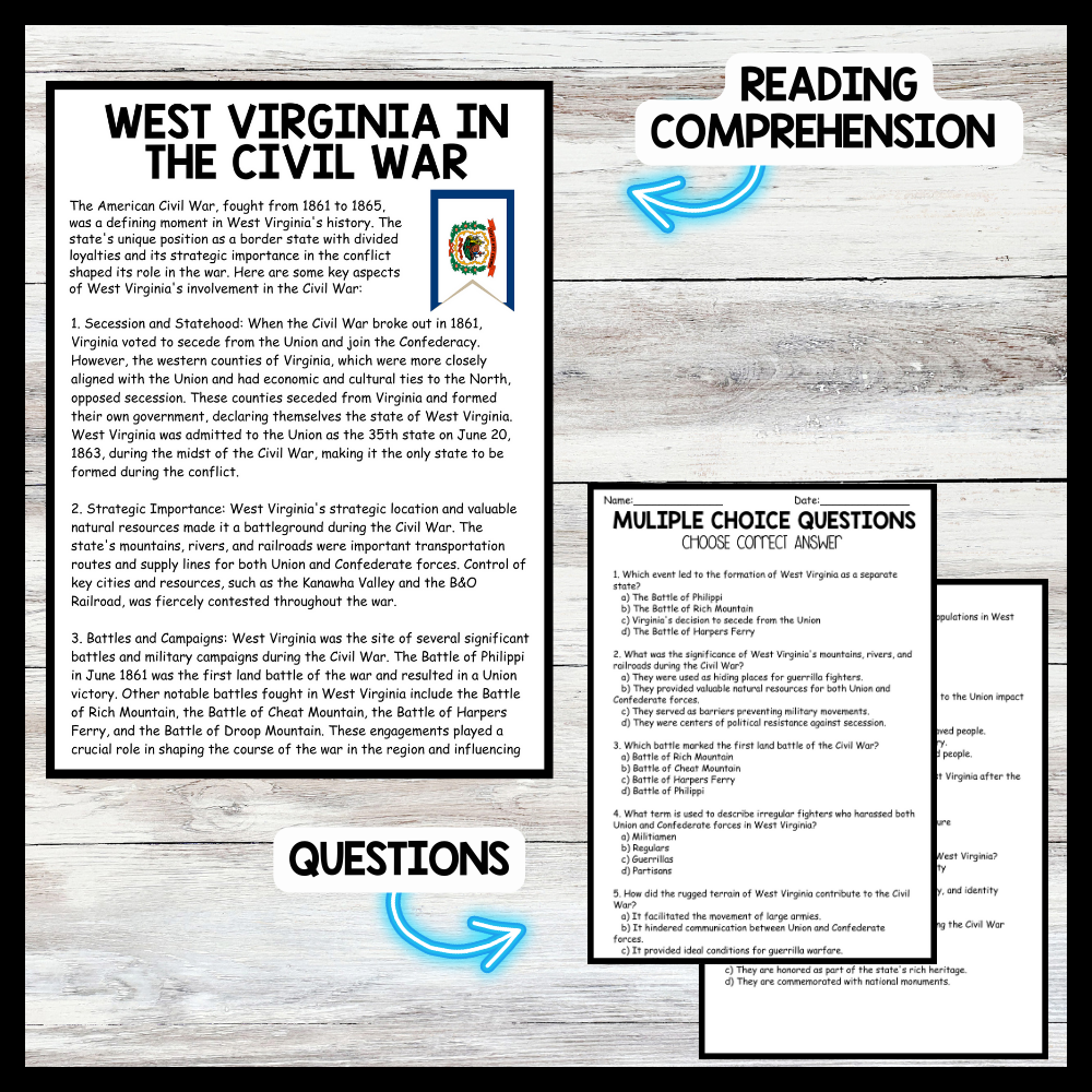West Virginia Day - the Civil War Reading comprehension Passage and Questions