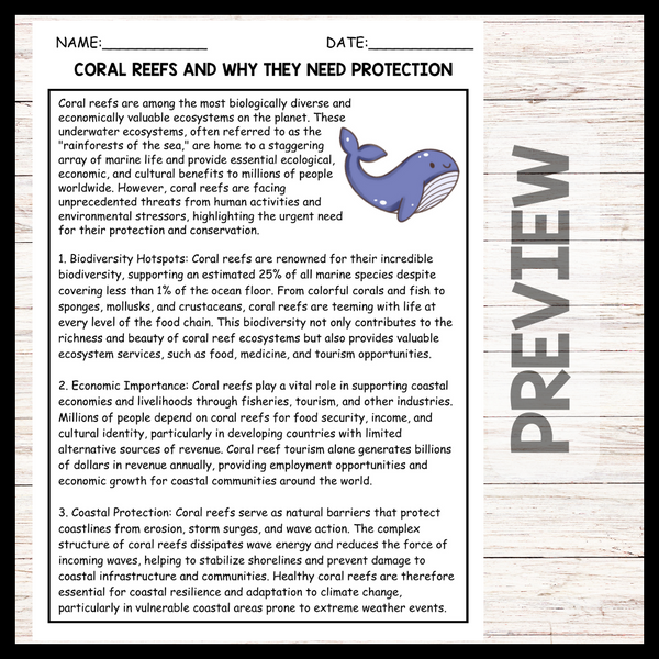 - "CORAL REEFS AND WHY THEY NEED PROTECTION" WORLD OCEAN DAY Reading Comprehension