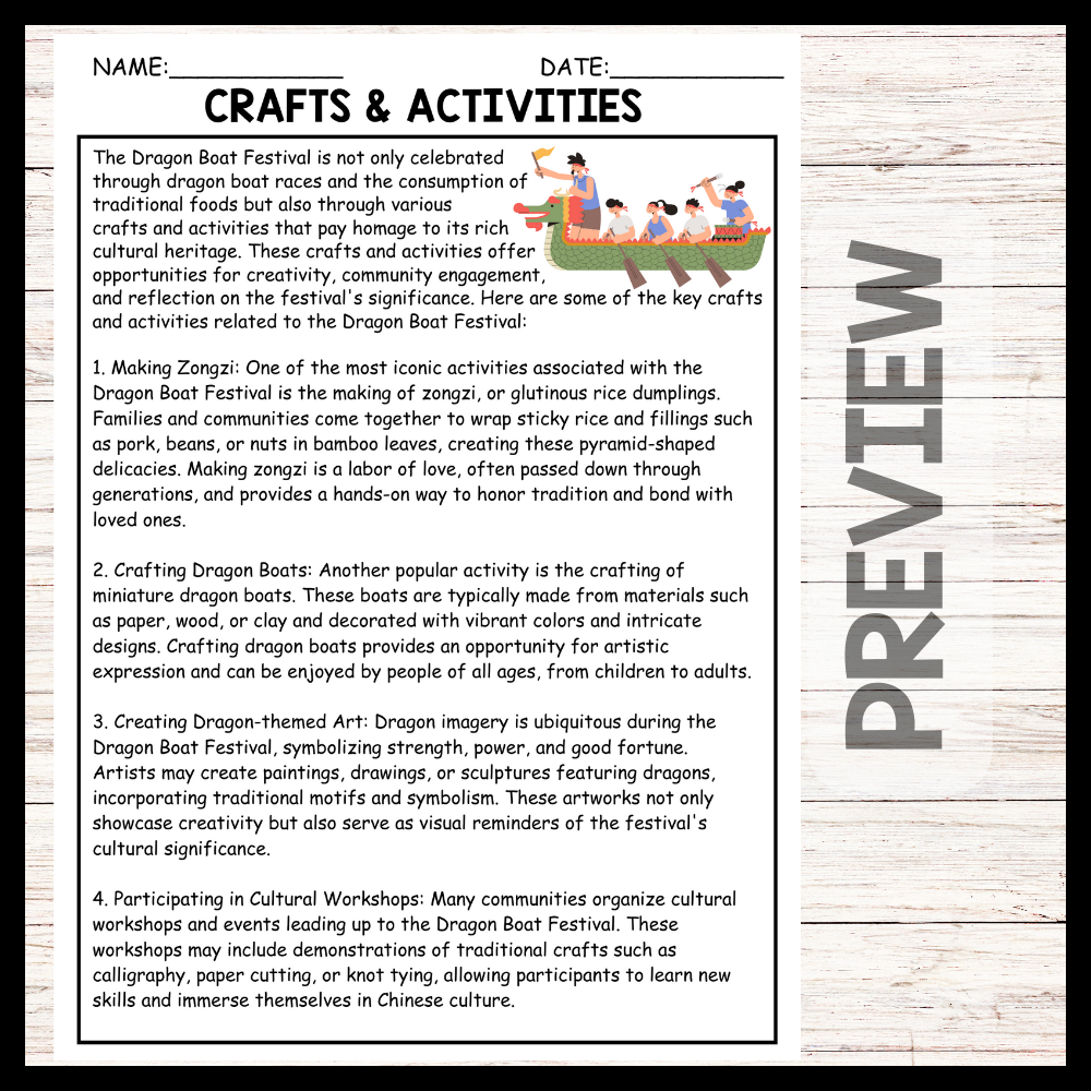 - "CRAFTS & ACTIVITIES"DRAGON BOAT FESTIVAL Reading Comprehension