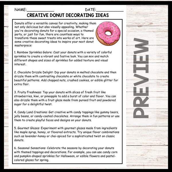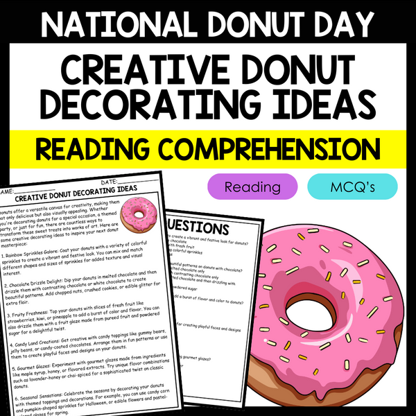- "CREATIVE DONUT DECORATING IDEAS" NATIONAL DONUT DAY Reading Comprehension