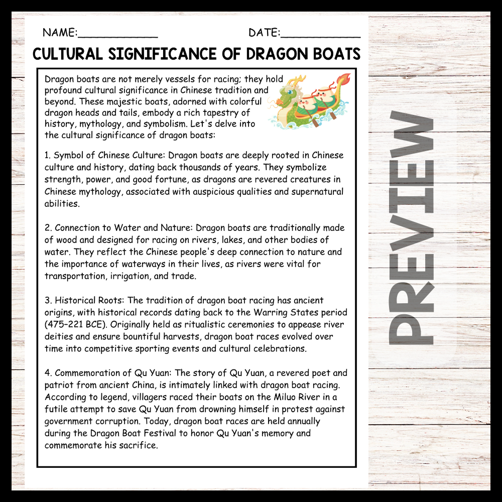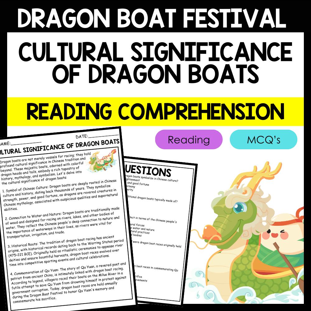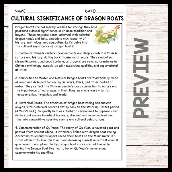 - "CULTURAL SIGNIFICANCE OF DRAGON BOATS" DRAGON BOAT FESTIVAL Reading Comprehension
