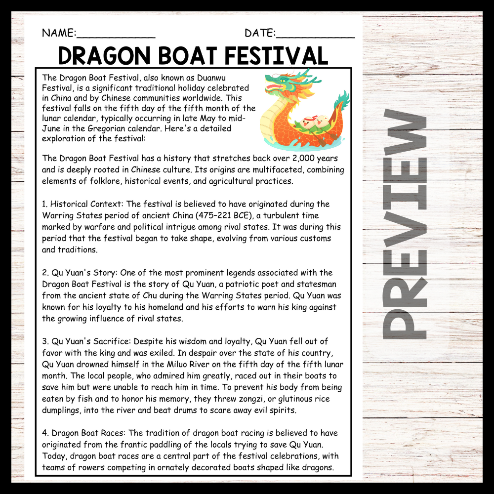 - "DRAGON BOAT FESTIVAL"DRAGON BOAT FESTIVAL Reading Comprehension