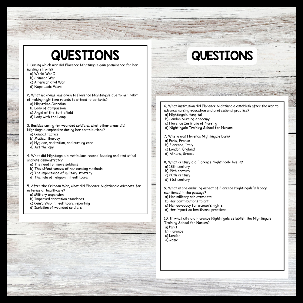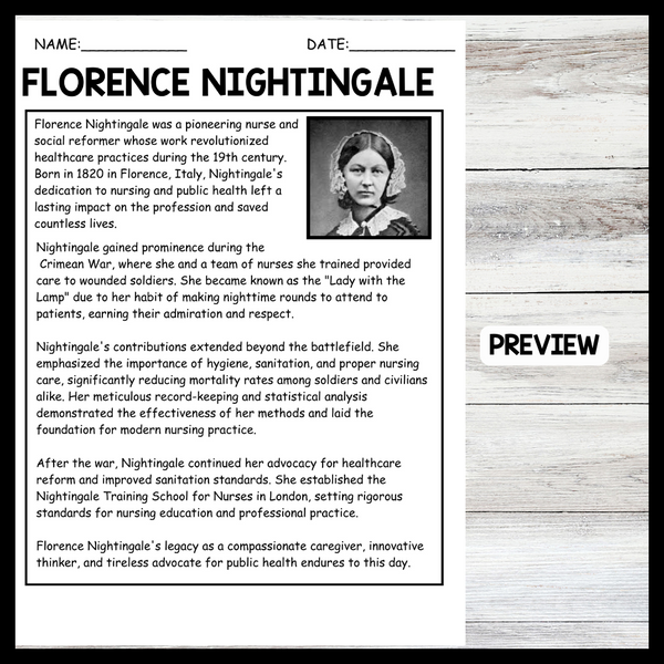 - "FLORENCE NIGHTINGALE" WOMEN’S HISTORY MONTH Reading Comprehension