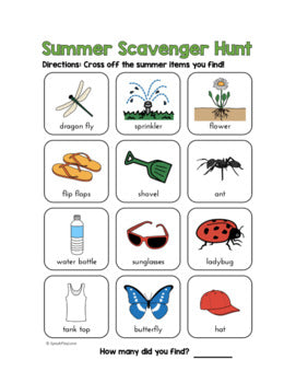 - Summer Scavenger Hunt - Summer Vocabulary - Speech Therapy Activity