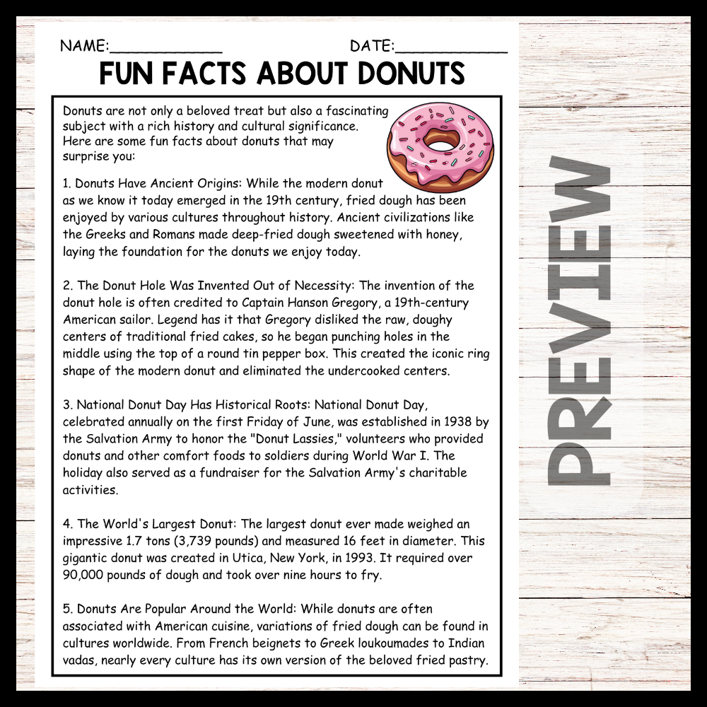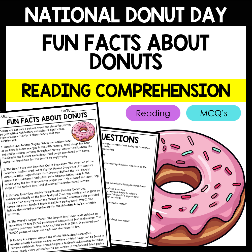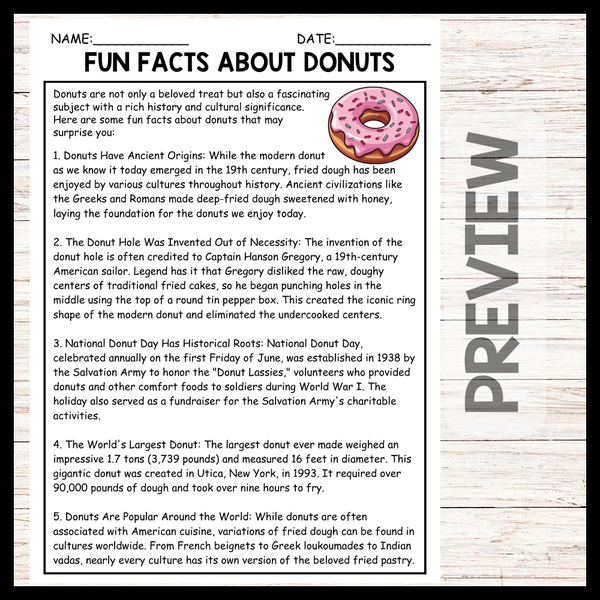 - "FUN FACTS ABOUT DONUTS" NATIONAL DONUT DAY Reading Comprehension