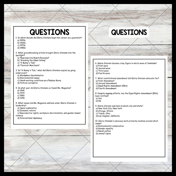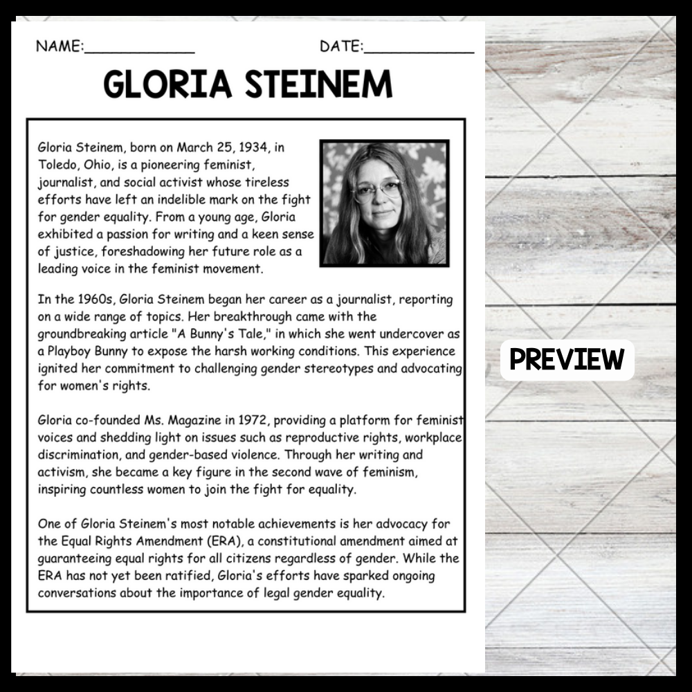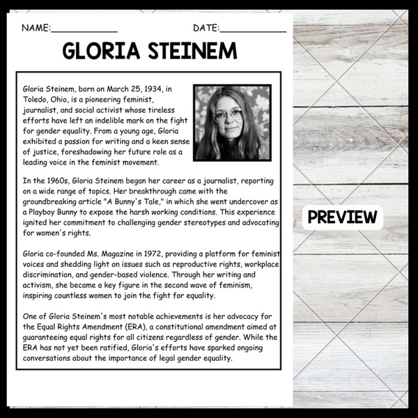 - "GLORIA STEINEM" WOMEN’S HISTORY MONTH Reading Comprehension