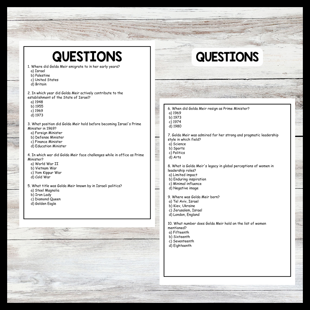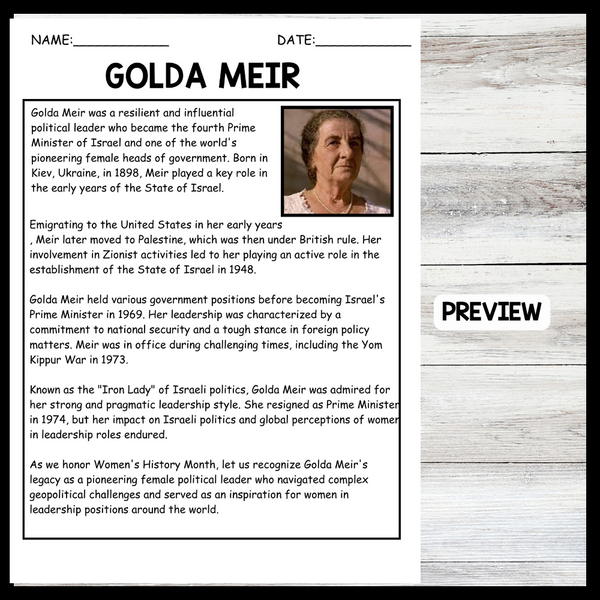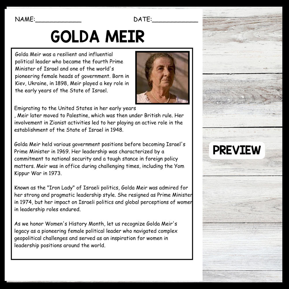- "GOLDA MEIR" WOMEN’S HISTORY MONTH Reading Comprehension