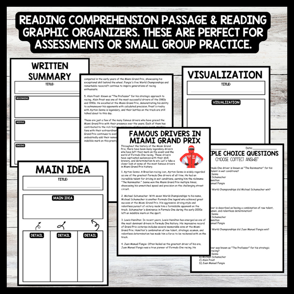Different options provided- multiple choice, written response or graphic organizers to focus on individual skill.