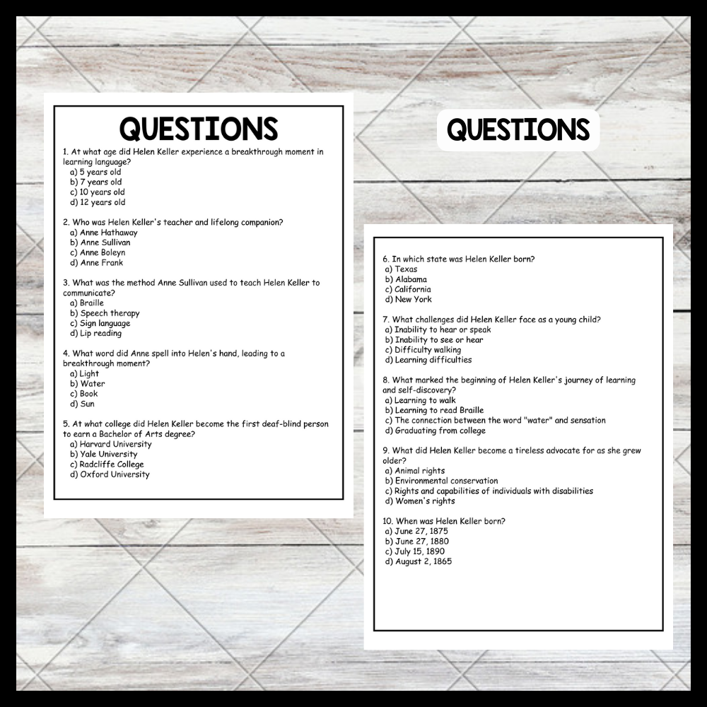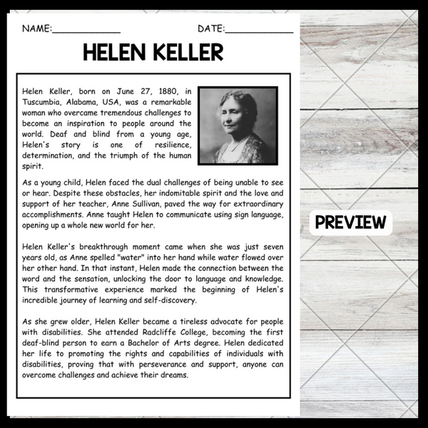 - "HELEN KELLER" WOMEN’S HISTORY MONTH Reading Comprehension