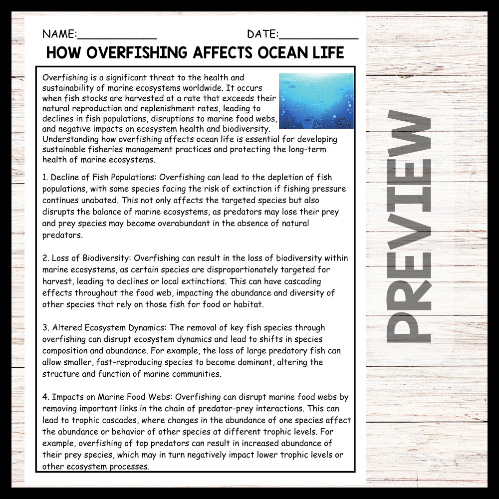 - "HOW OVERFISHING AFFECTS OCEAN LIFE" WORLD OCEAN DAY Reading Comprehension