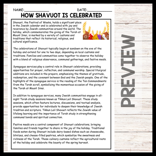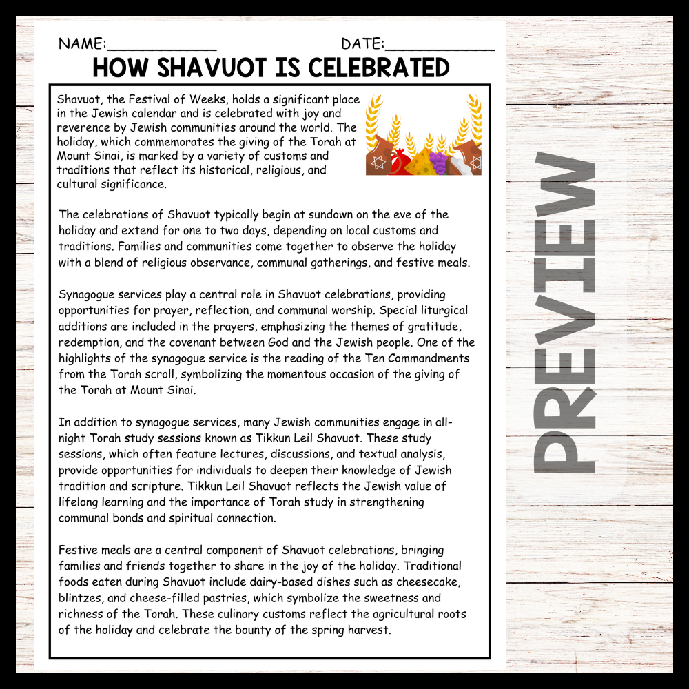 - "HOW SHAVUOT IS CELEBRATED" SHAVUOT Reading Comprehension