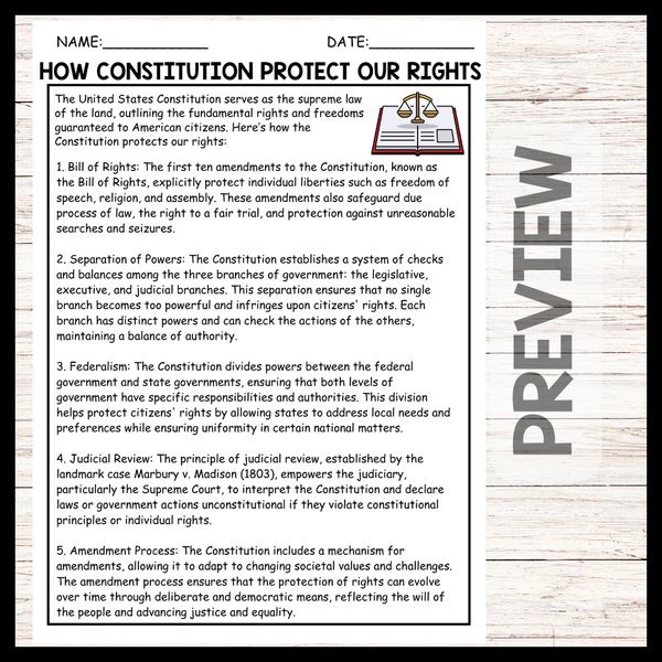 - How the Constitution Protects Our Rights Reading comprehension