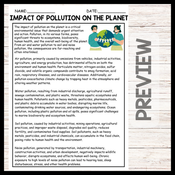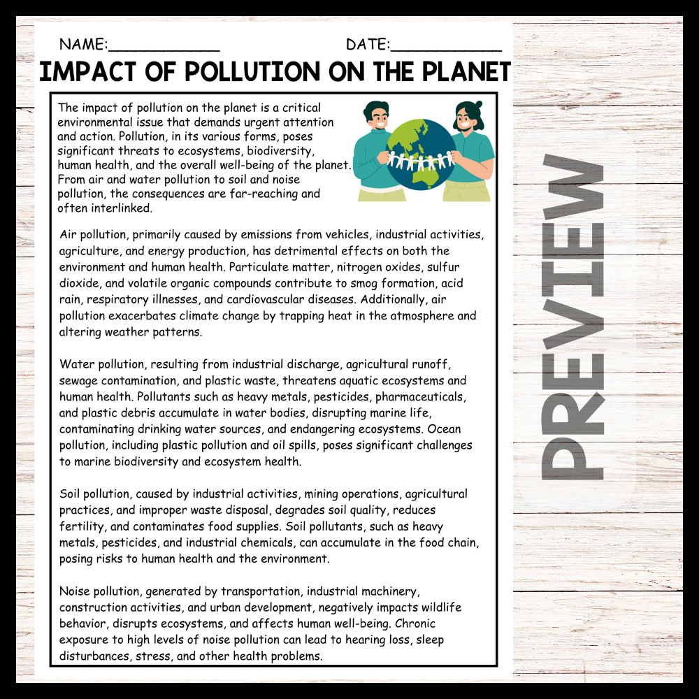 - "IMPACT OF POLLUTION ON THE PLANET" ENVIRONMENT DAY Reading Comprehension