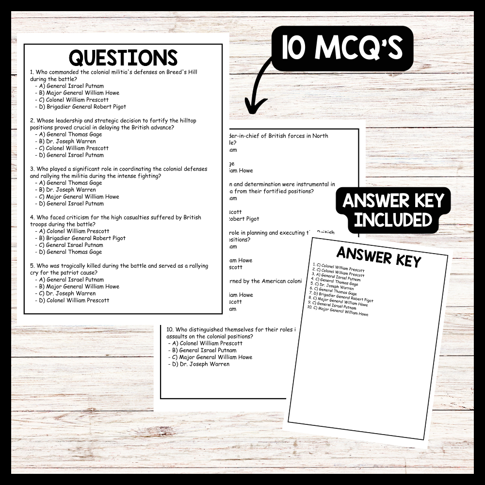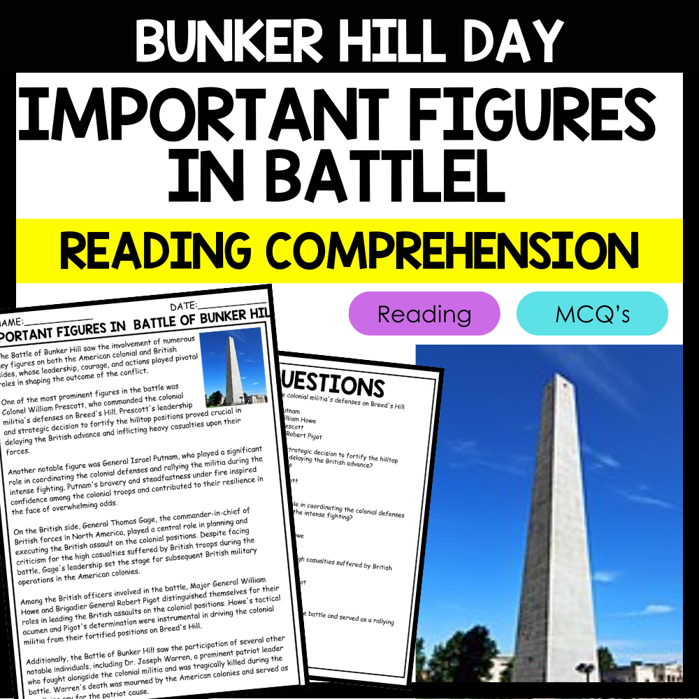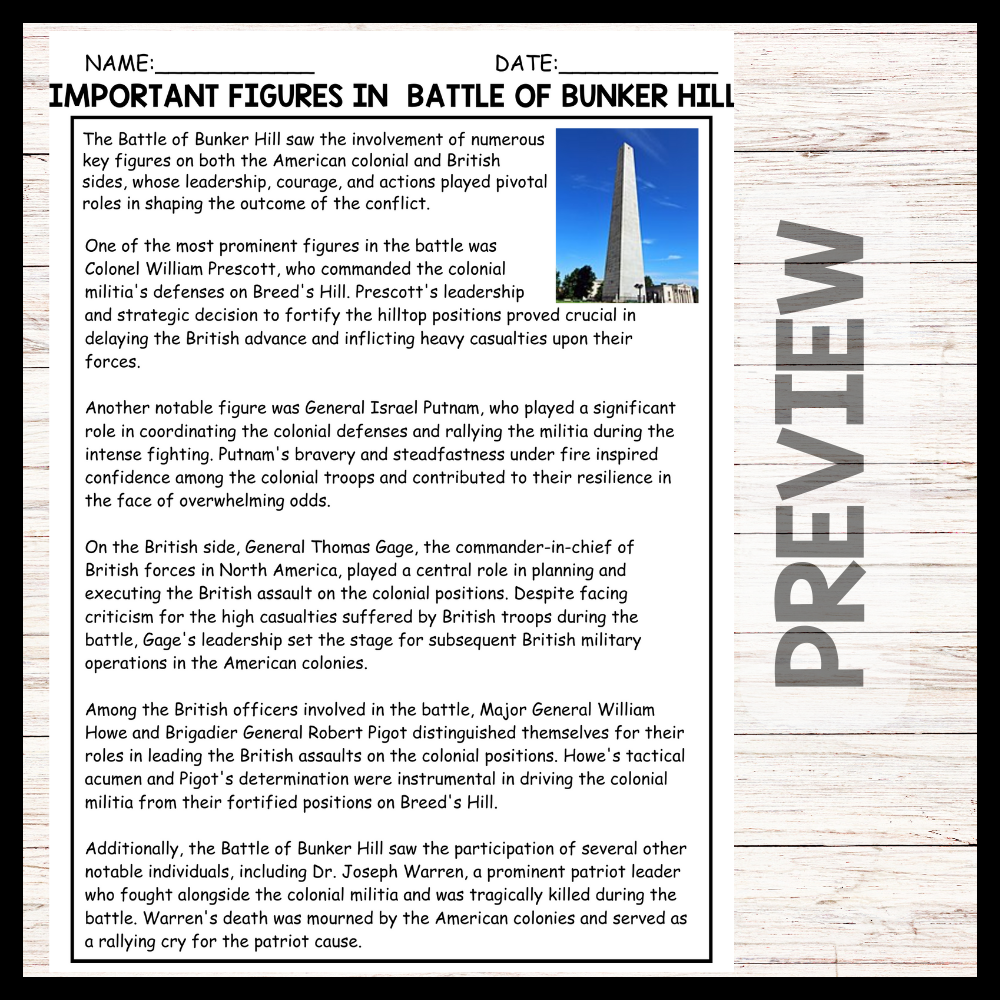 - "IMPORTANT FIGURES IN BATTLE OF BUNKER HILL" BUNKER HILL DAY Reading Comprehension
