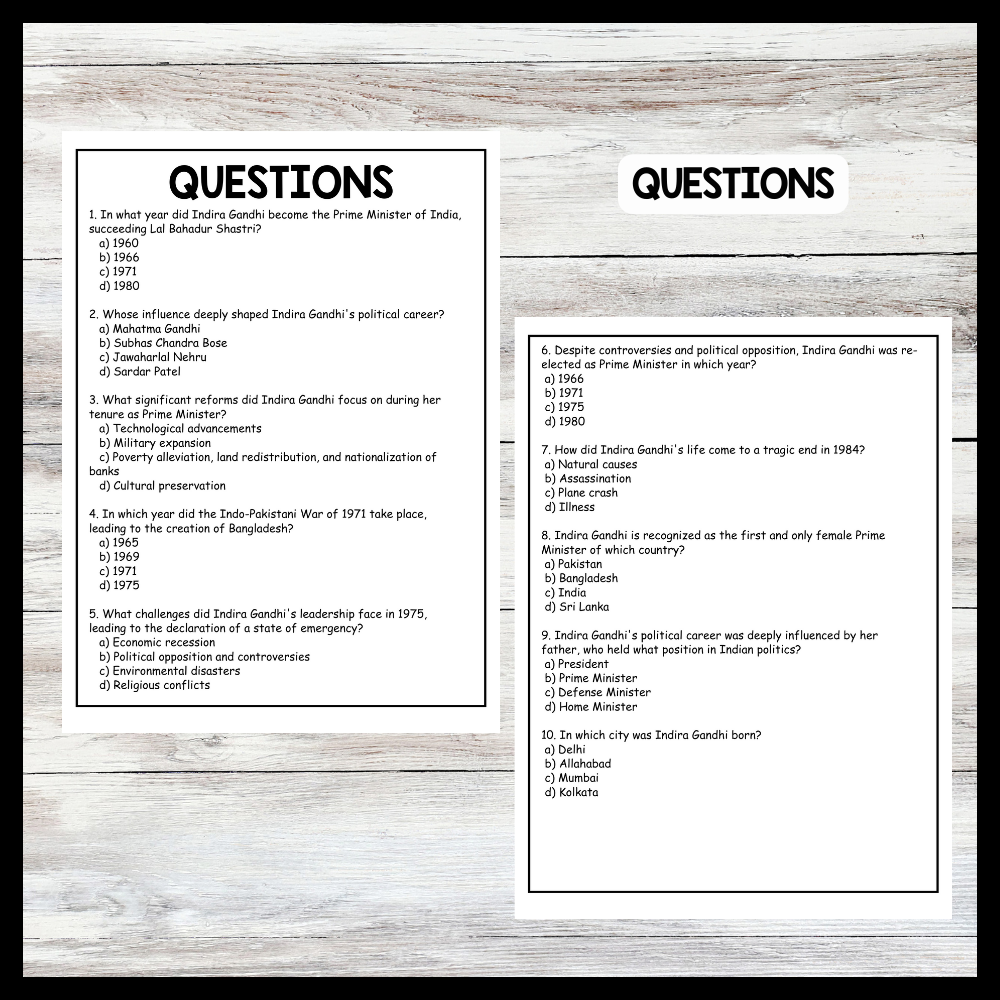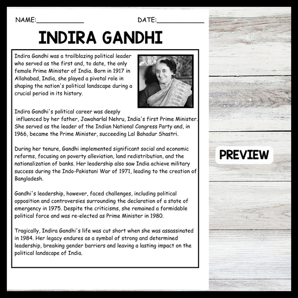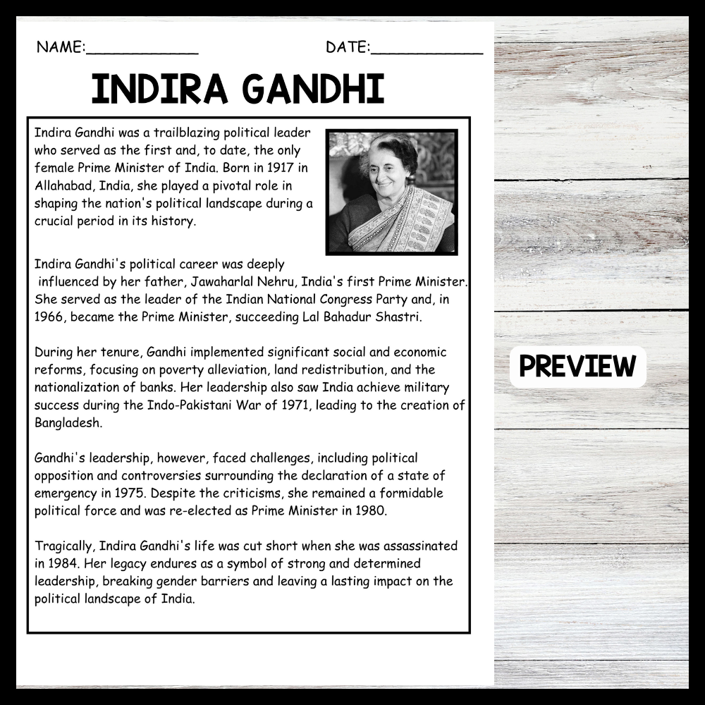 - "INDIRA GANDHI" WOMEN’S HISTORY MONTH Reading Comprehension (Copy)