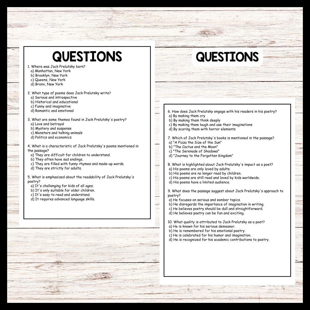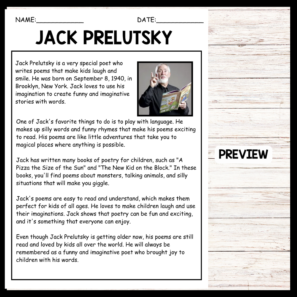 - "JACK PRELUTSKY" NATIONAL POETRY MONTH Reading Comprehension