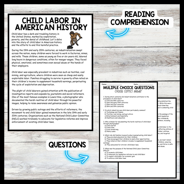 Labor History Month - Child Labor in American Reading comprehension Passage and Questions History