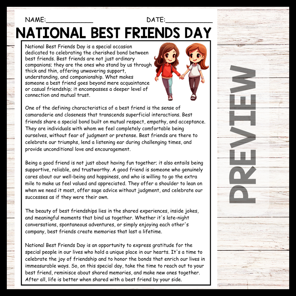 - "NATIONAL BEST FRIENDS DAY"NATIONAL BEST FRIENDS DAY Reading Comprehension