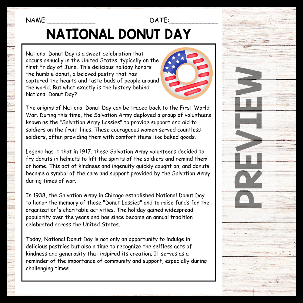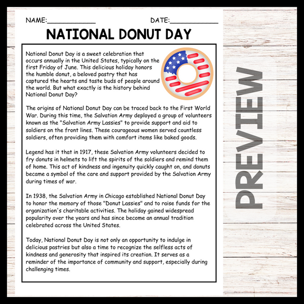 - "NATIONAL DONUT DAY" NATIONAL DONUT DAY Reading Comprehension