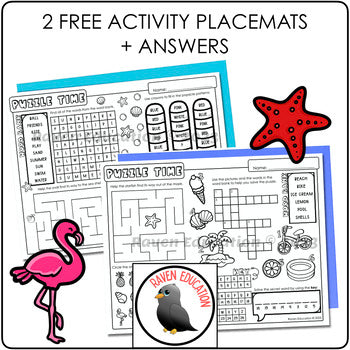 - 1 PDF File with 2 summer activity placemats & 2 placemats with the answers