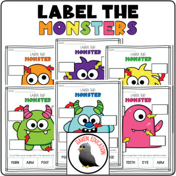 Enjoy these 6 FREE Label The Monsters Worksheets. Students can practice labeling different parts of the monsters: eyes, teeth, horns, arms, body, mouth, nose, head, feet and fur.