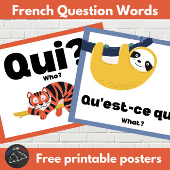 This is a set of FREE French question word posters with a cute jungle animal theme. Print in color or black and white - 8.5 X 11" pdf pages.
