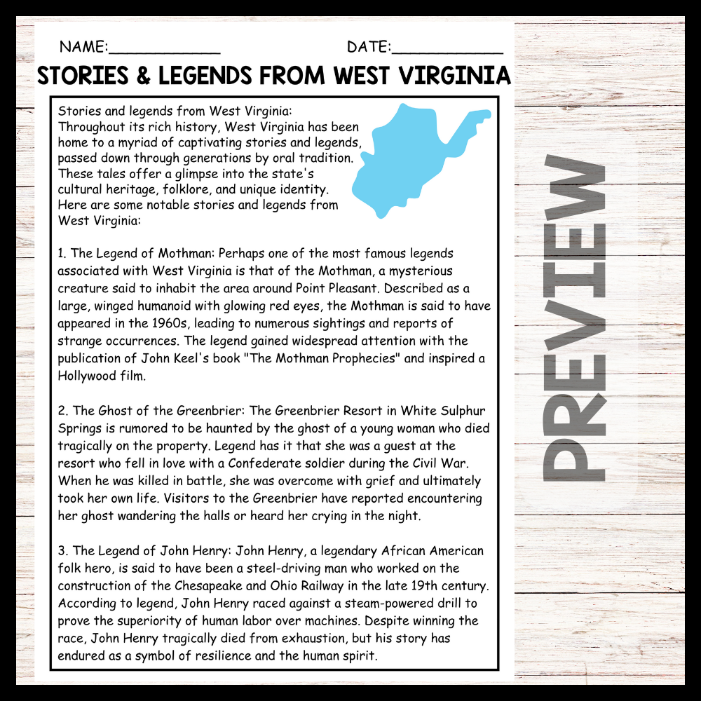 - Stories and legends from West Virginia Reading Comprehension