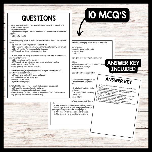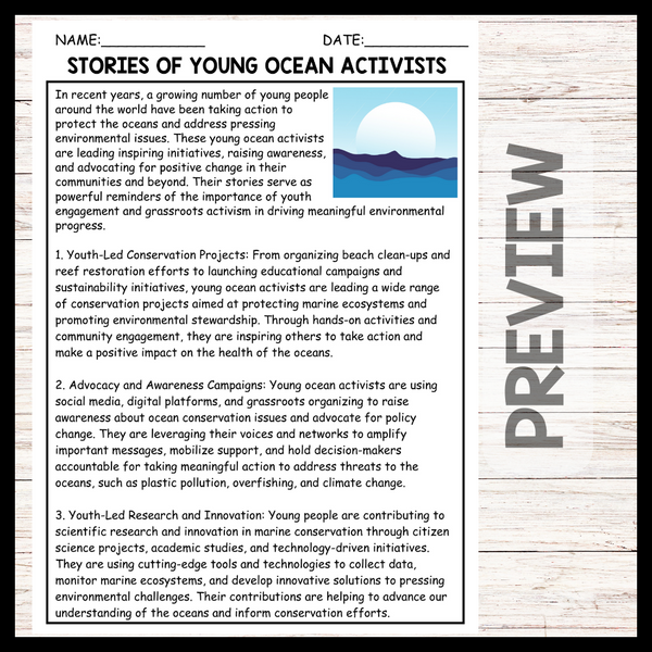 - "STORIES OF YOUNG OCEAN ACTIVISTS" WORLD OCEAN DAY Reading Comprehension
