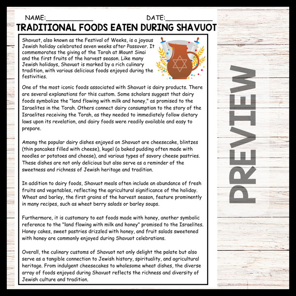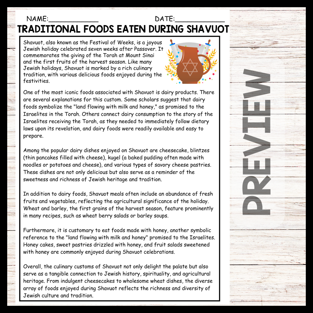 - "TRADITIONAL FOODS EATEN DURING SHAVUOT" SHAVUOT Reading Comprehension