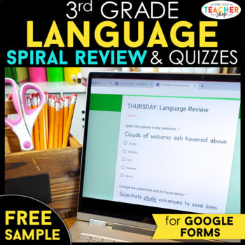 FREE SAMPLE! This is the DIGITAL, Google Forms version of my top-selling 3rd Grade daily language spiral review resource (covers grammar and word study). Get 2 FREE weeks of daily spiral language review for your students Monday through Thursday, and assess your students on Friday. No paper. Fully Digital.