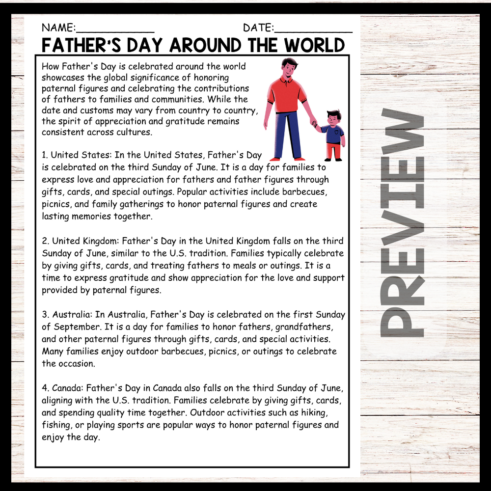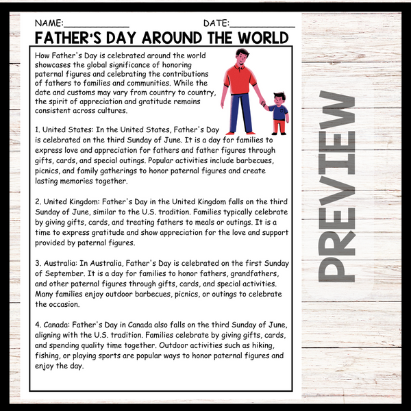 "FAMOUS FATHERS IN HISTORY" FATHER'S DAY Reading Comprehension