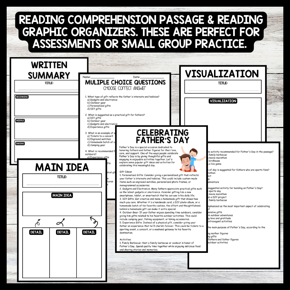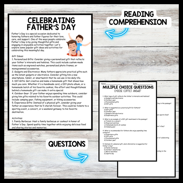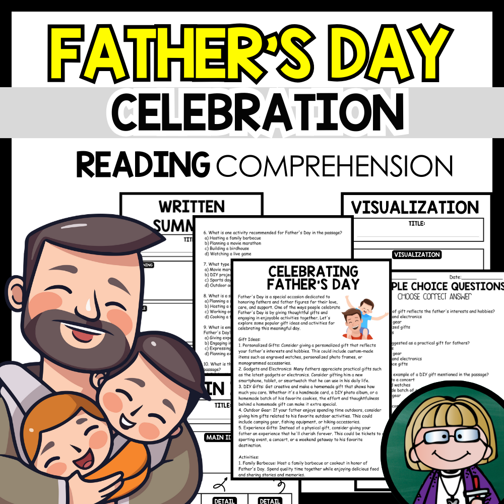 Grow your students knowledge with this Nonfiction Reading Comprehension Passage - Father's Day - Celebration These reading practice passages are perfect for: warm-up, bell work, homework, or weekly assessments. Students can use independently in literacy groups, guided reading groups. Different...View more