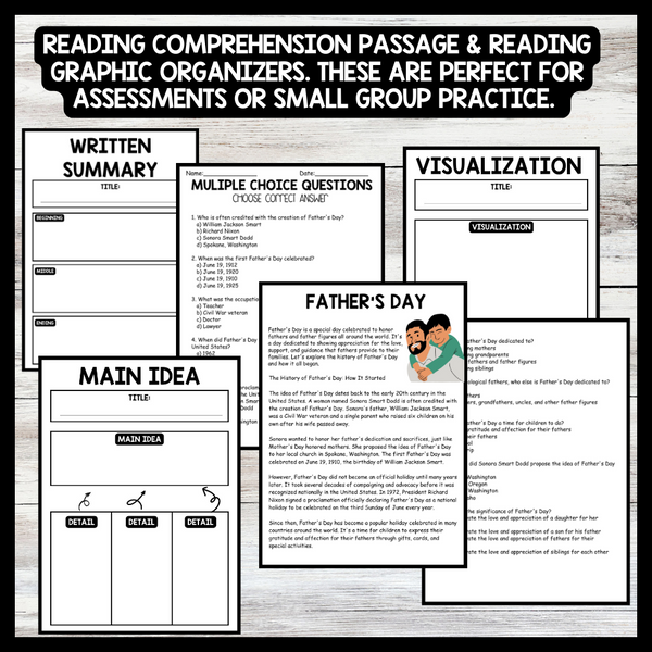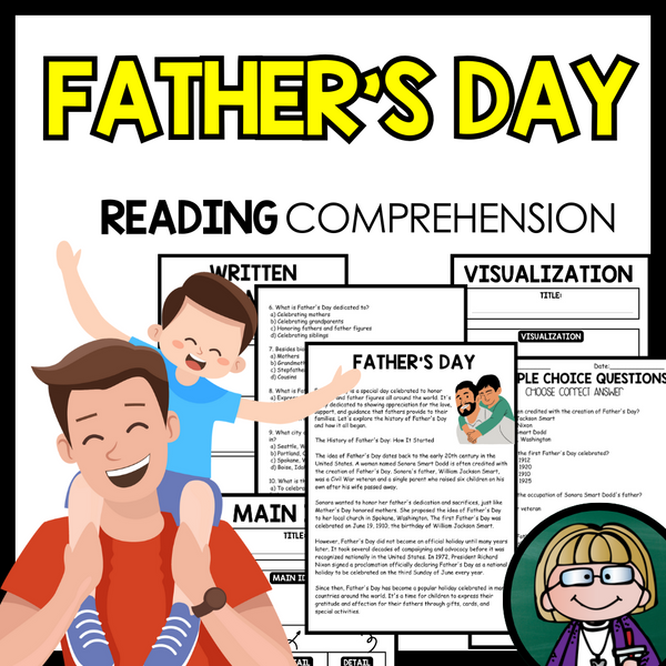 Grow your students knowledge with this Nonfiction Reading Comprehension Passage - Father's Day -  These reading practice passages are perfect for: warm-up, bell work, homework, or weekly assessments. Students can use independently in literacy groups, guided reading groups. Different options...View more
