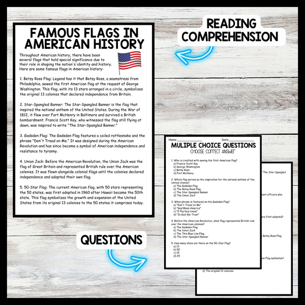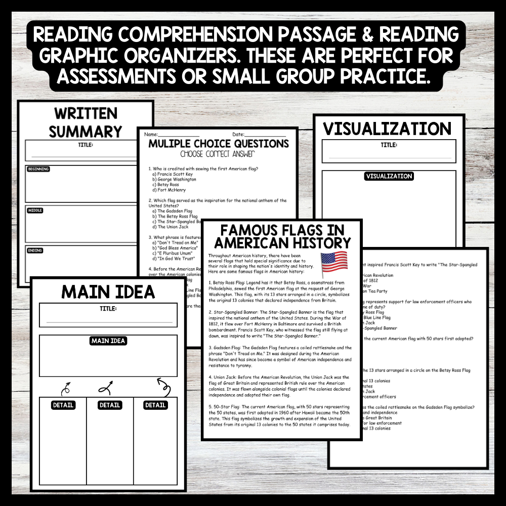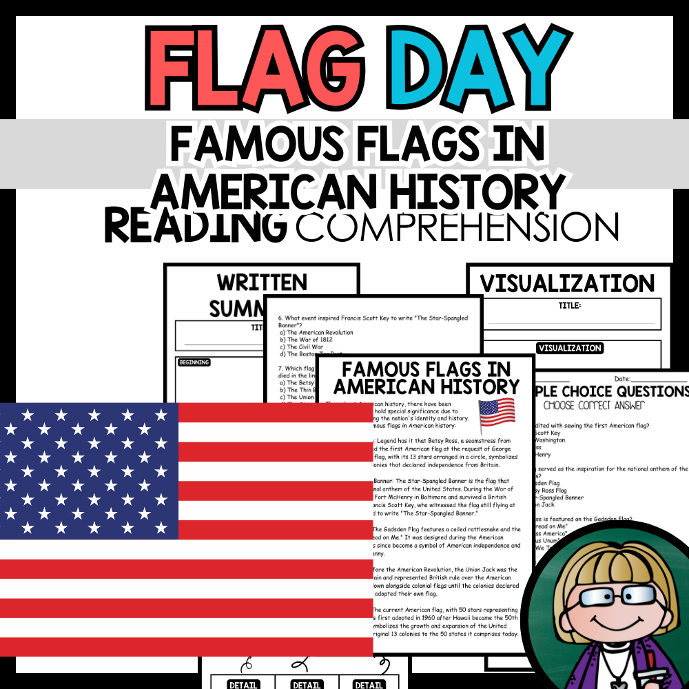 Grow your students knowledge with this Nonfiction Reading Comprehension Passage - Flag Day - Famous Flags in American History These reading practice passages are perfect for: warm-up, bell work, homework, or weekly assessments. Students can use independently in literacy groups,...View more