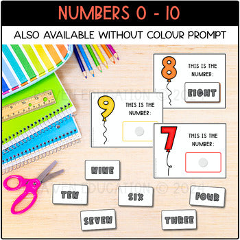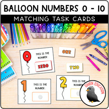 - Balloon Numbers 0-10 Matching Task Cards (Number Names)