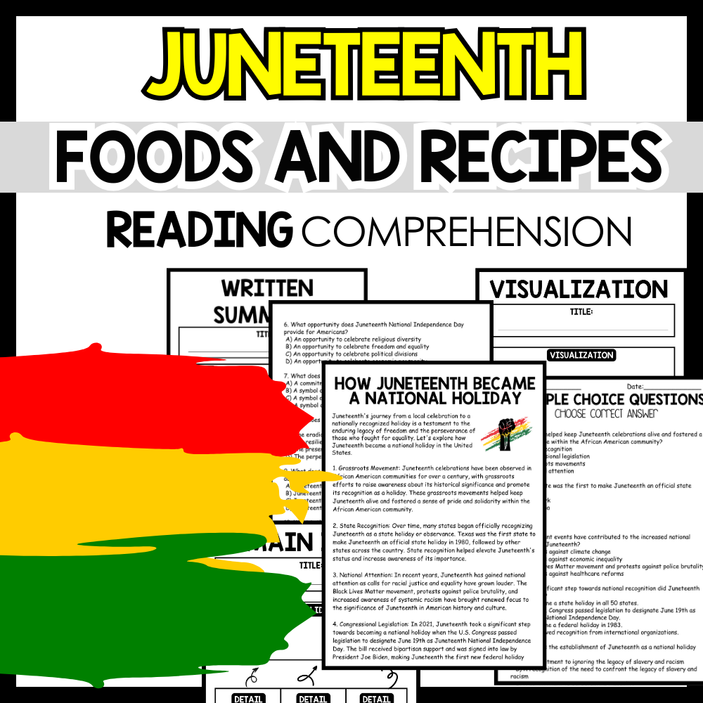 Grow your students knowledge with this Nonfiction Reading Comprehension Passage - Juneteenth - Foods and Recipes These reading practice passages are perfect for: warm-up, bell work, homework, or weekly assessments. Students can use independently in literacy groups, guided reading groups....View more