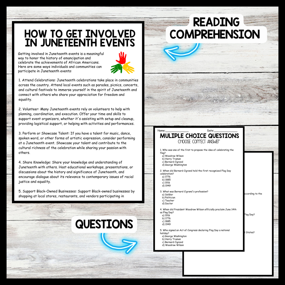Grow your students knowledge with this Nonfiction Reading Comprehension Passage - Juneteenth - How to Get Involved