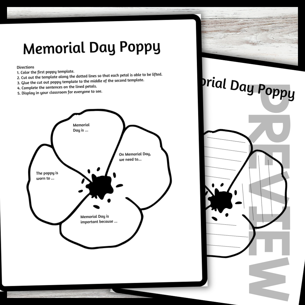 - Memorial Day - Poppy Craft Writing prompt activity - Bulletin Board Craft
