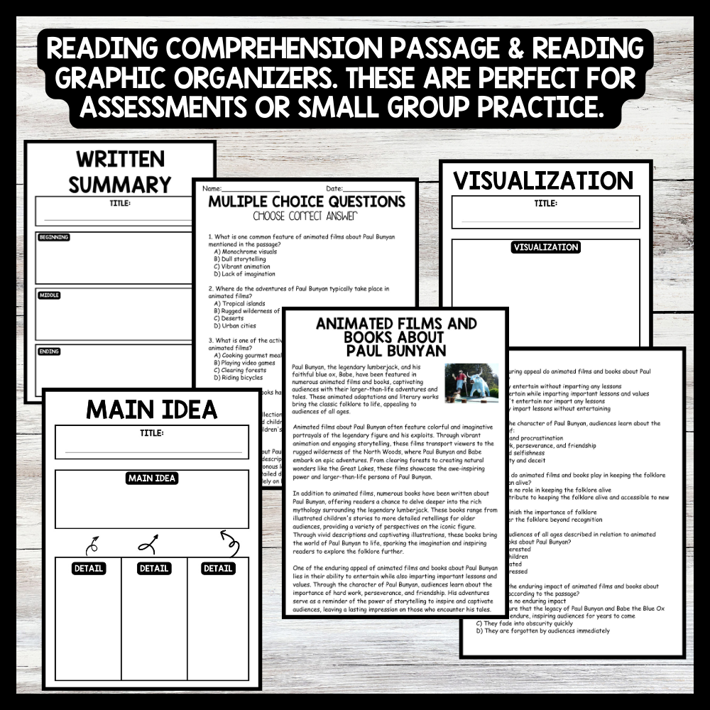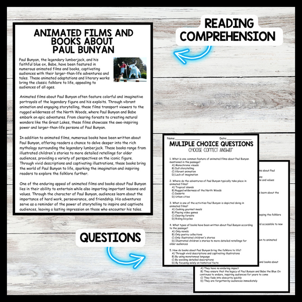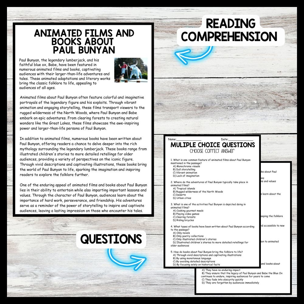 Grow your students knowledge with this Nonfiction Reading Comprehension Passage - Paul Bunyan Day - Animated Films