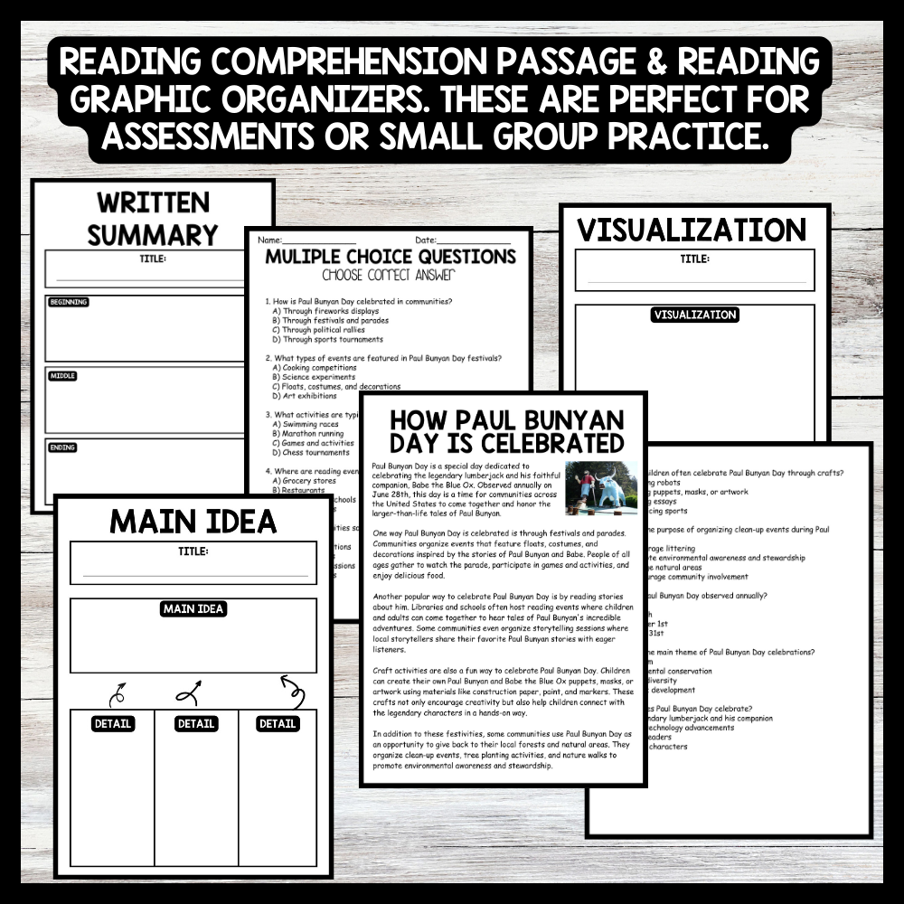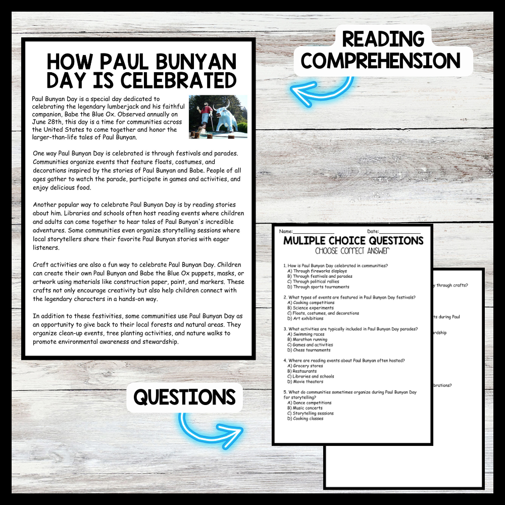 Grow your students knowledge with this Nonfiction Reading Comprehension Passage - Paul Bunyan Day - Celebration