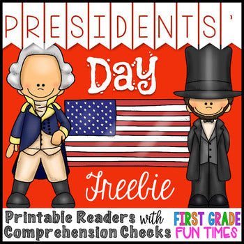 Presidents' Day printable reader with two versions of a comprehension check - one asking for complete sentence answers and the other for them to circle their answers.
