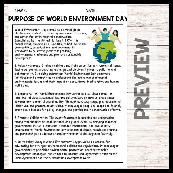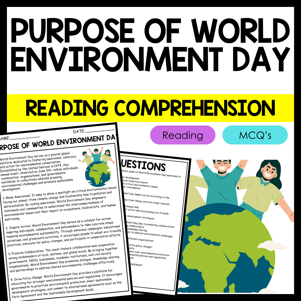 "PURPOSE OF WORLD ENVIRONMENT DAY" ENVIRONMENT DAY Reading Comprehension